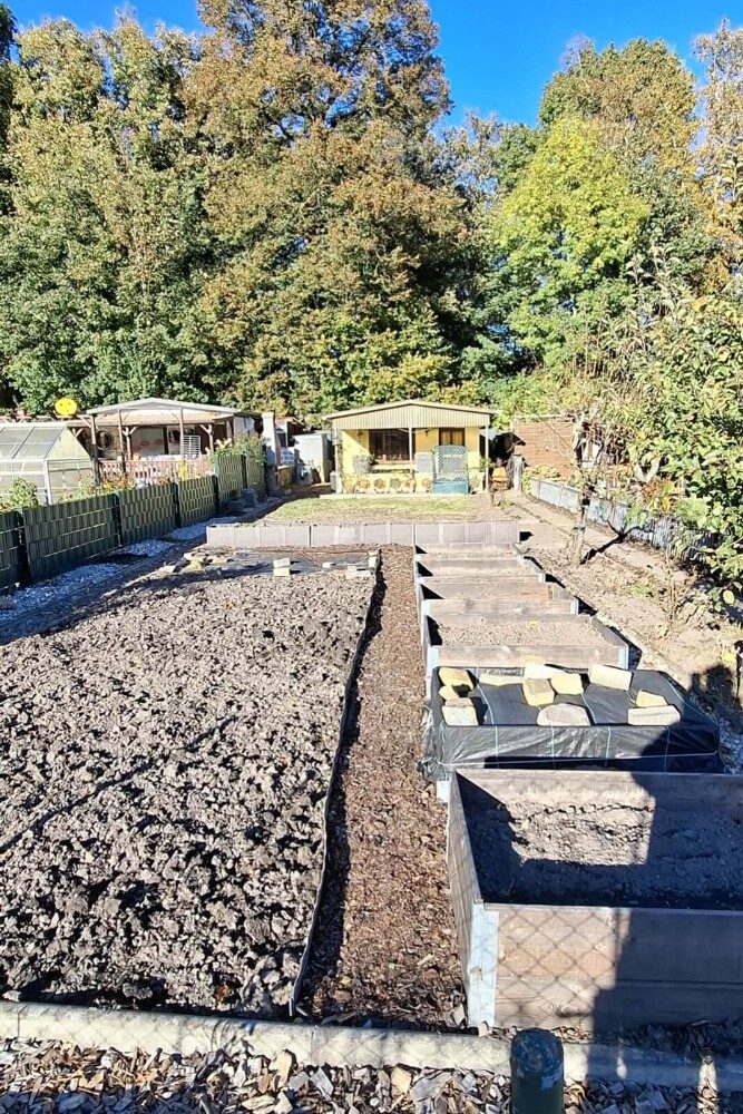 Sehen Sie das Potenzial? Parzelle 40 bietet mit seinem Obstbaumbestand, den Beeten und der Rasenfläche genügend Platz zum Wohlfühlen. Die einfache, kleine Laube ist renovierungsbedürftig, eröffnet aber auch Freiraum für individuelle Gestaltungsideen.
