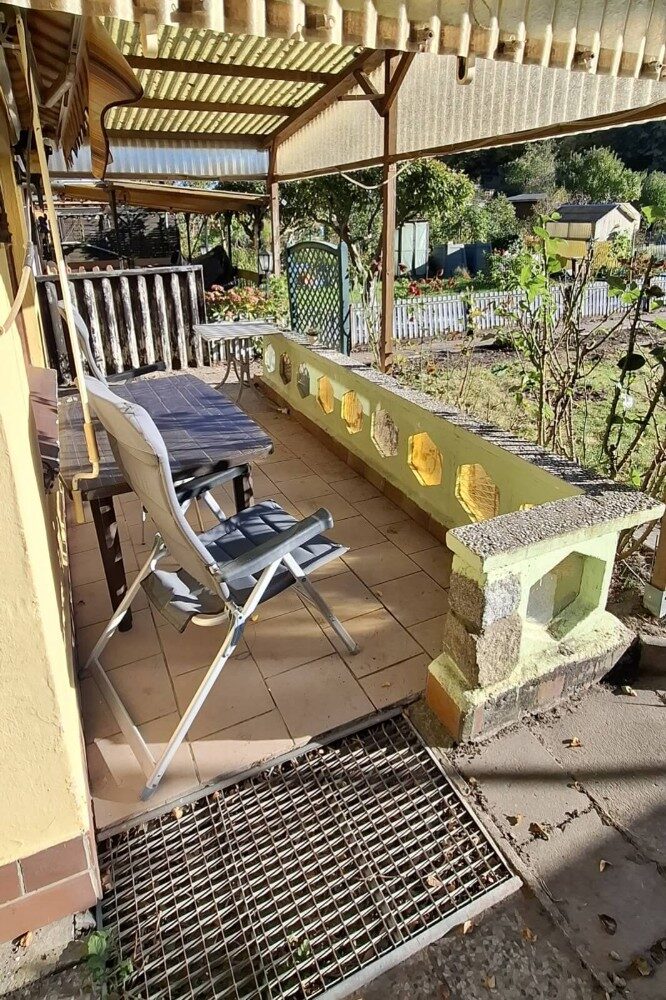 Hier erwartet Sie ein sehr schön angelegter und gepflegter Garten. Sie können sofort loslegen. Eine einfache, aber gut in Stand gehaltene Laube samt Terasse laden nach getaner Arbeit zum Entspannen ein.